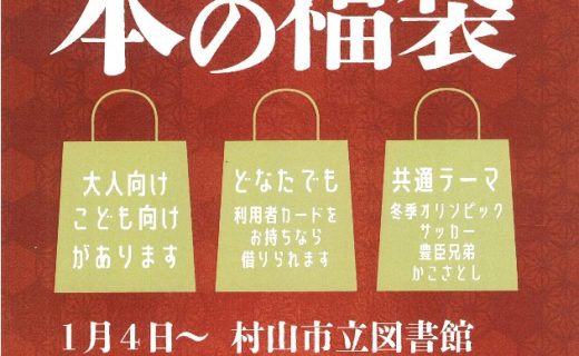 北村山地域の4つの図書館と連携し、それぞれの地域の特色を紹介する本の福袋を貸し出しします。しおりのプレゼント付き。本だけ...