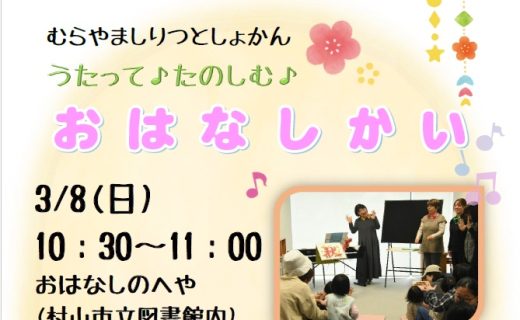 3/8のおはなしのへやは、えほんだけではなく歌とダンスも楽しめるおはなし会です。ぜひお越しください。 日時 開催日 3月...