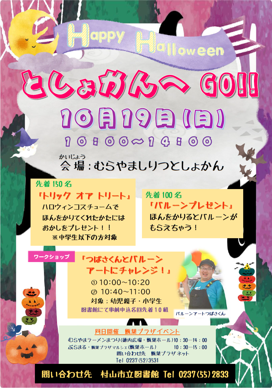 仮装をして本を借りてくれた方にお菓子やバルーンをプレゼント!!
